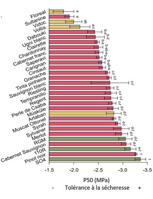 Les résultats du projet Physiopath révèlent que la taille des vaisseaux influence la capacité de la vigne à limiter la progression des champignons responsables de l’ESCA : plus la densité de gros vaisseaux est importante, plus la plante est vulnérable. Par ailleurs, les chercheurs ont observé que la sécheresse inhibe l’expression des symptômes d’ESCA sans pour autant endiguer la maladie. « Si la sécheresse n’est pas la solution contre l’ESCA, celle-ci étant avant tout un facteur limitant la productivité, cet acquis permet en revanche de comprendre le fonctionnement physiologique de la plante face à l’ESCA », souligne Chloé Delmas de l’INRAE et responsable du projet. Ces résultats associés au fait qu’il existe une large gamme de variation de la résistance à l’embolie entre les cépages, laisseraient envisager la possibilité de sélectionner des cépages moins vulnérables à la sécheresse et à l’ESCA. Autre résultat obtenu, l’ESCA provoque un dysfonctionnement hydraulique de la plante dû à des occlusions du xylème par des thylloses et des gels.