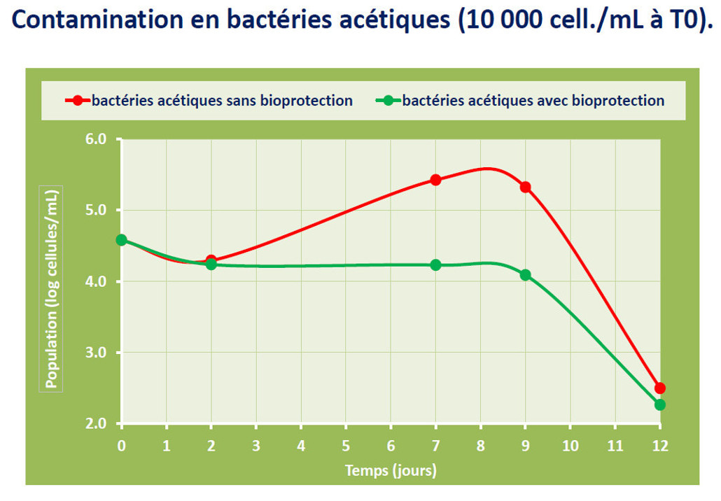 Il est recommandé de maintenir une température de 15°C et de suivre l’évolution de l’acidité volatile qui détermine la limite de la technique. Il convient également de s’assurer que les bactéries utilisées pour l’ensemencement ne possèdent pas d’activité cinnamyl-esterase. Les travaux menés par l’IFV en partenariat avec la société Lallemand ont également mis en avant l’effet inhibiteur du lysozyme sur le rôle de bioprotection des bactéries lactiques.