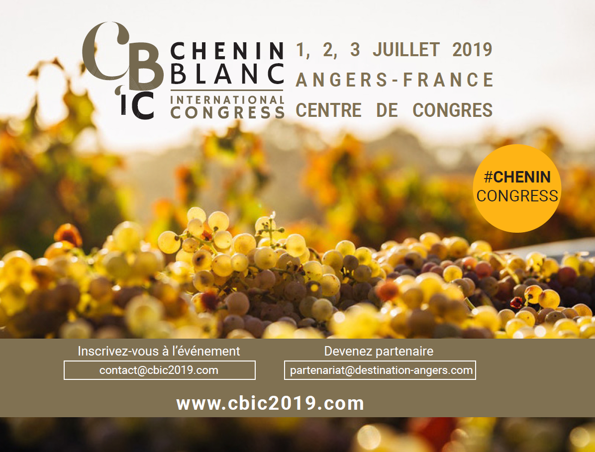 Ce congrès international s'annonce comme le rendez-vous incontournable du chenin blanc. Trois jours, du 1 au 3 juillet 2019,de débats et de rencontres entre scientifiques et professionnels : des conférences et tables rondes sur l'avenir du chenin blanc face aux défis environnementaux, climatiques, économiques, sociétaux et culturels du XXI° siècle. Les congressistes auront également l’occasion de participer à des dégustations de chenins du monde et de découvrir le vignoble du Val de Loire.