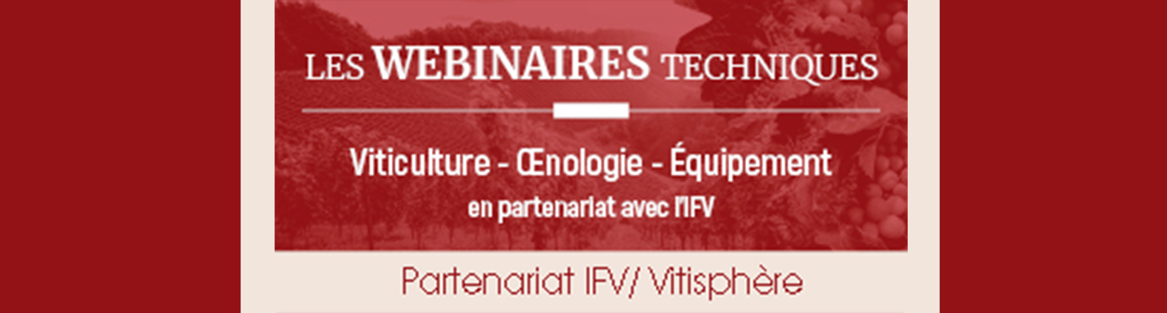 En partenariat avec l’IFV, Vitisphere vous propose une série de webinaires, autour de thématiques techniques en viticulture, œnologie et équipement. Durant une heure, en compagnie d’un expert IFV et d’un vigneron, apprenez et échangez sur des thèmes techniques centraux dans le pilotage de vos exploitations.