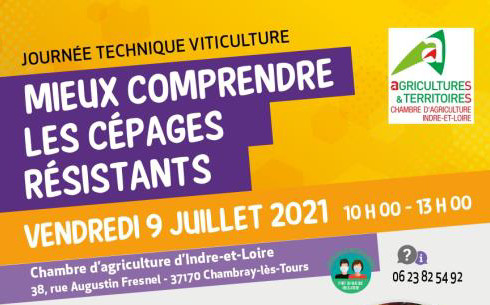 L’équipe viticulture-oenologie de la Chambre d'Agriculture d'Indre-et-Loire vous propose une rencontre technique pour tout comprendre sur les cépages résistants le vendredi 9 juillet 2021, de 10 h à 13 h.