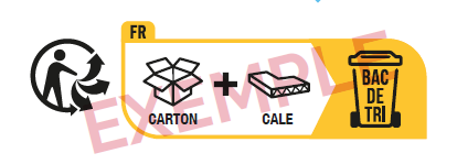 L’Info-tri Export : l’emballage est destiné à plusieurs marchés (France/Export), l’ajout du signe FR est obligatoire dès lors que le produit est vendu hors France. Il permet de signifier clairement que la règle de tri concerne le territoire français.