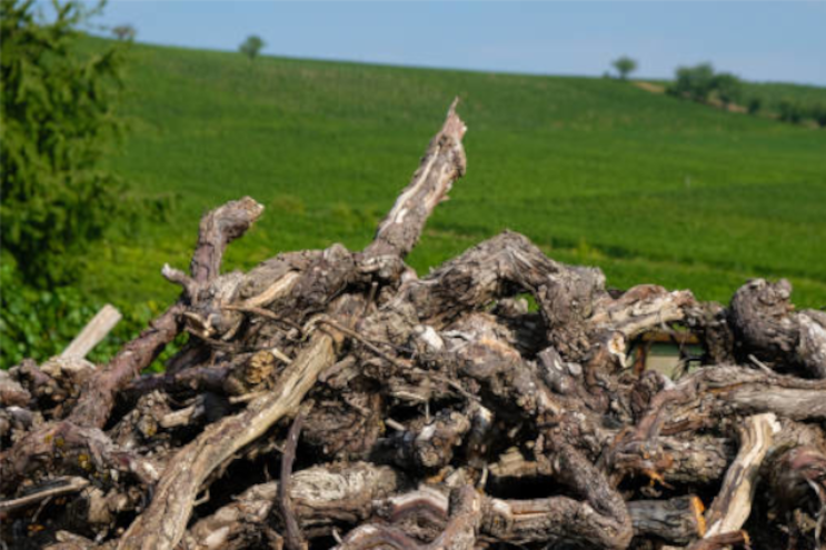 - Les souches ou ceps ou pieds de vigne issus des arrachages de parcelles entières et de pieds morts ou malades sur les parcelles en production. Elles constituent une biomasse majoritairement ligneuse.