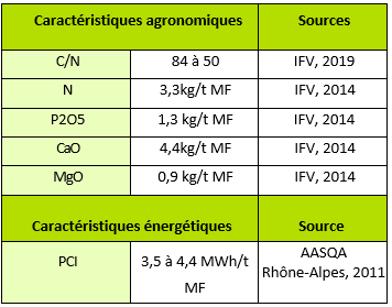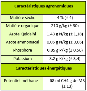 Tableau 3 : Caractéristiques agronomiques et énergétiques des lies de vin